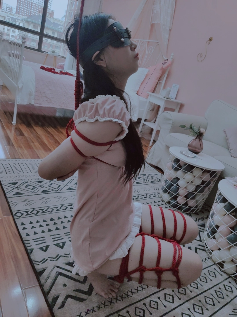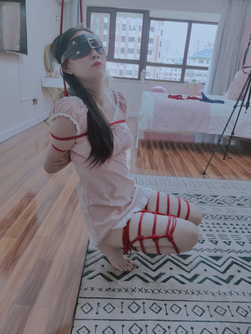 可怜的妹子哟,最后两条白嫩丰满的胳膊都勒紫了...