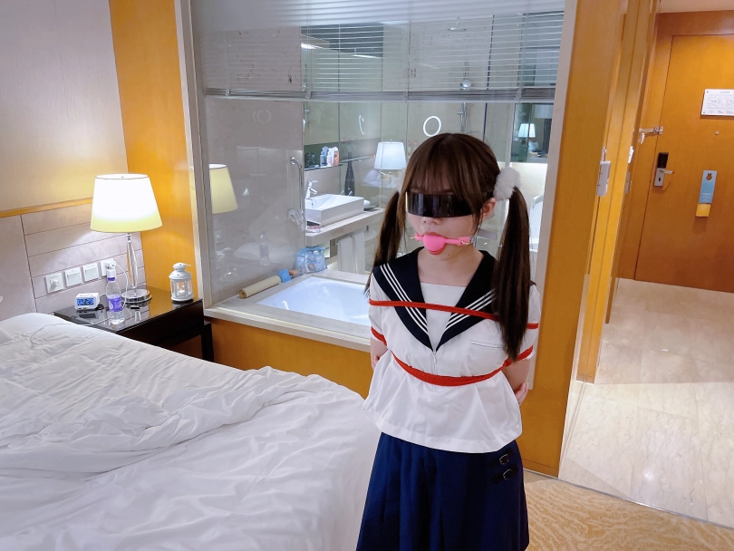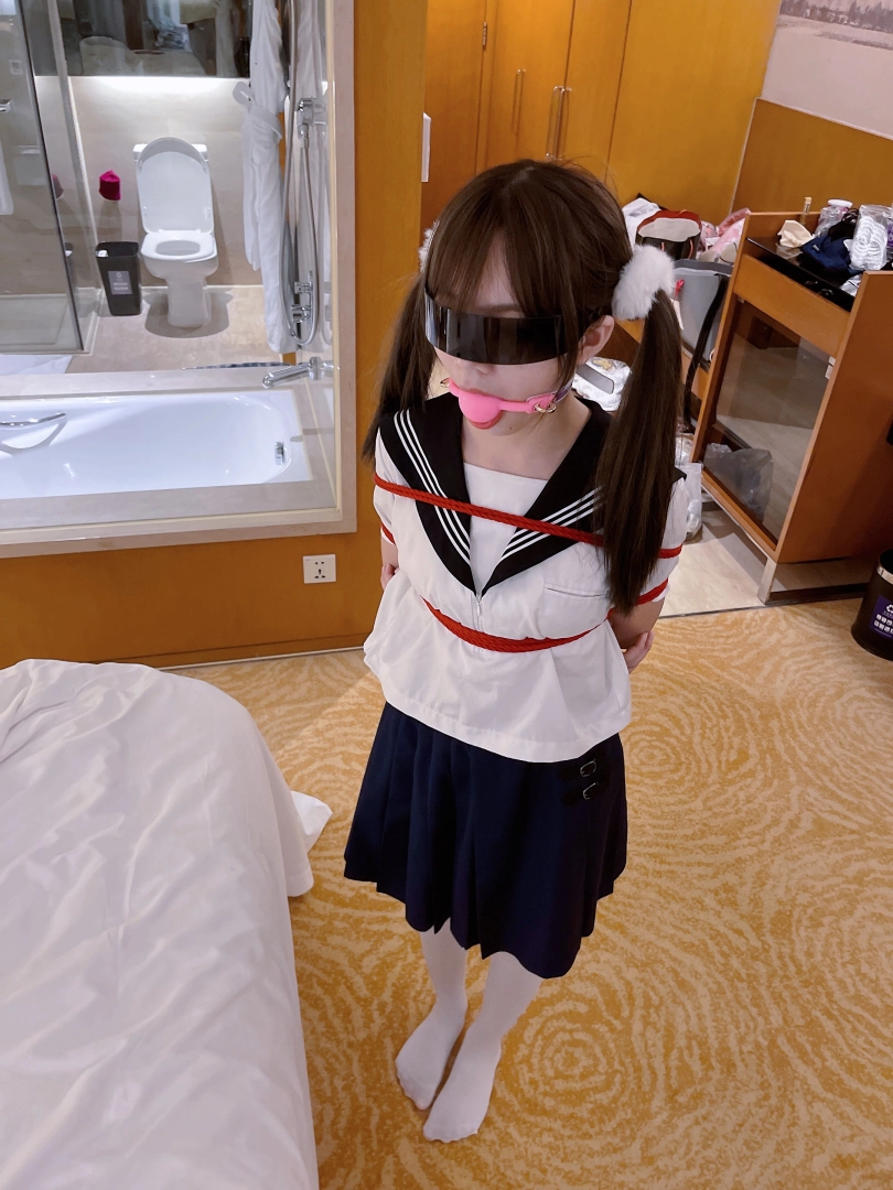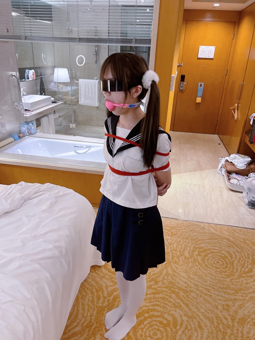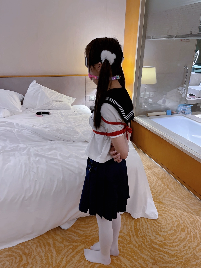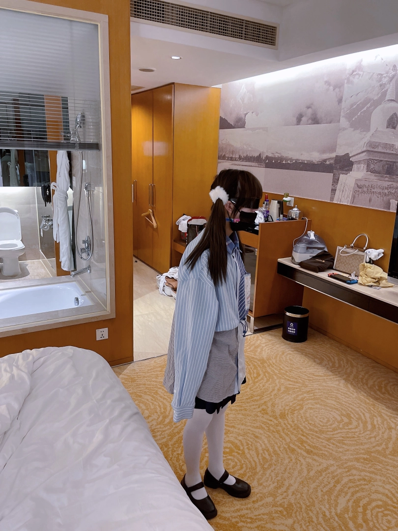 茶茶一直很害羞,这次打算带茶茶尝试羞耻的伪装拘束:把茶茶绑好后带上口球口罩,披上外套后出门。茶茶需要穿过酒店大堂、门卫、保安并在室外散步一阵子才允许回来哦~