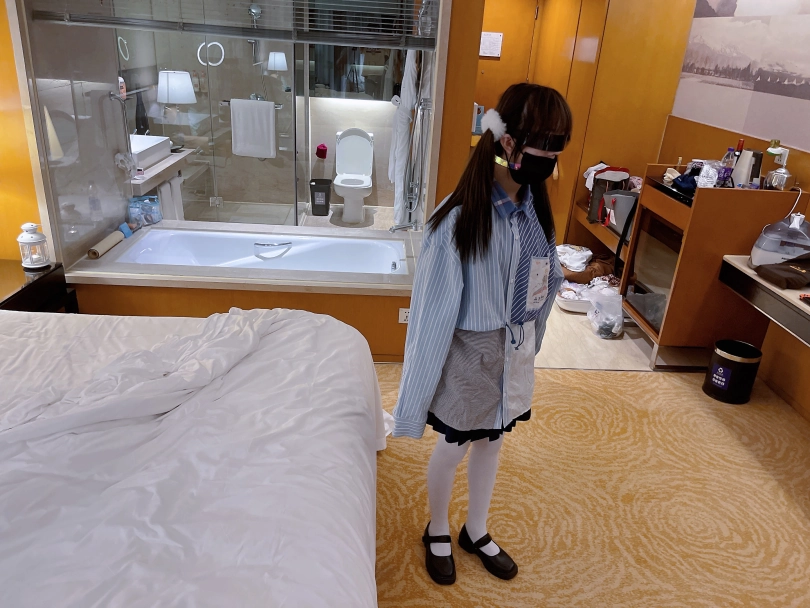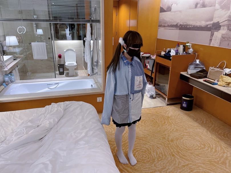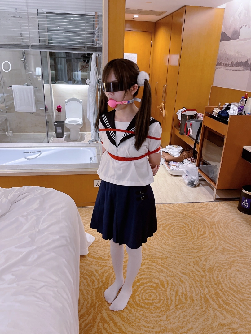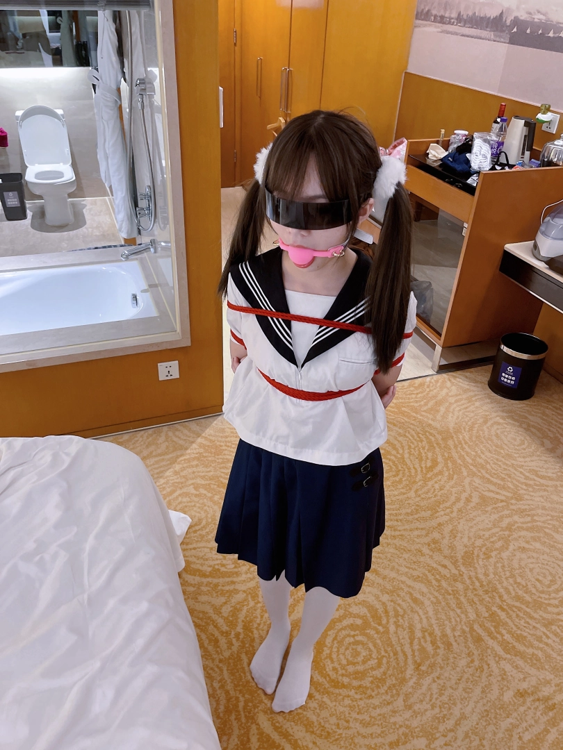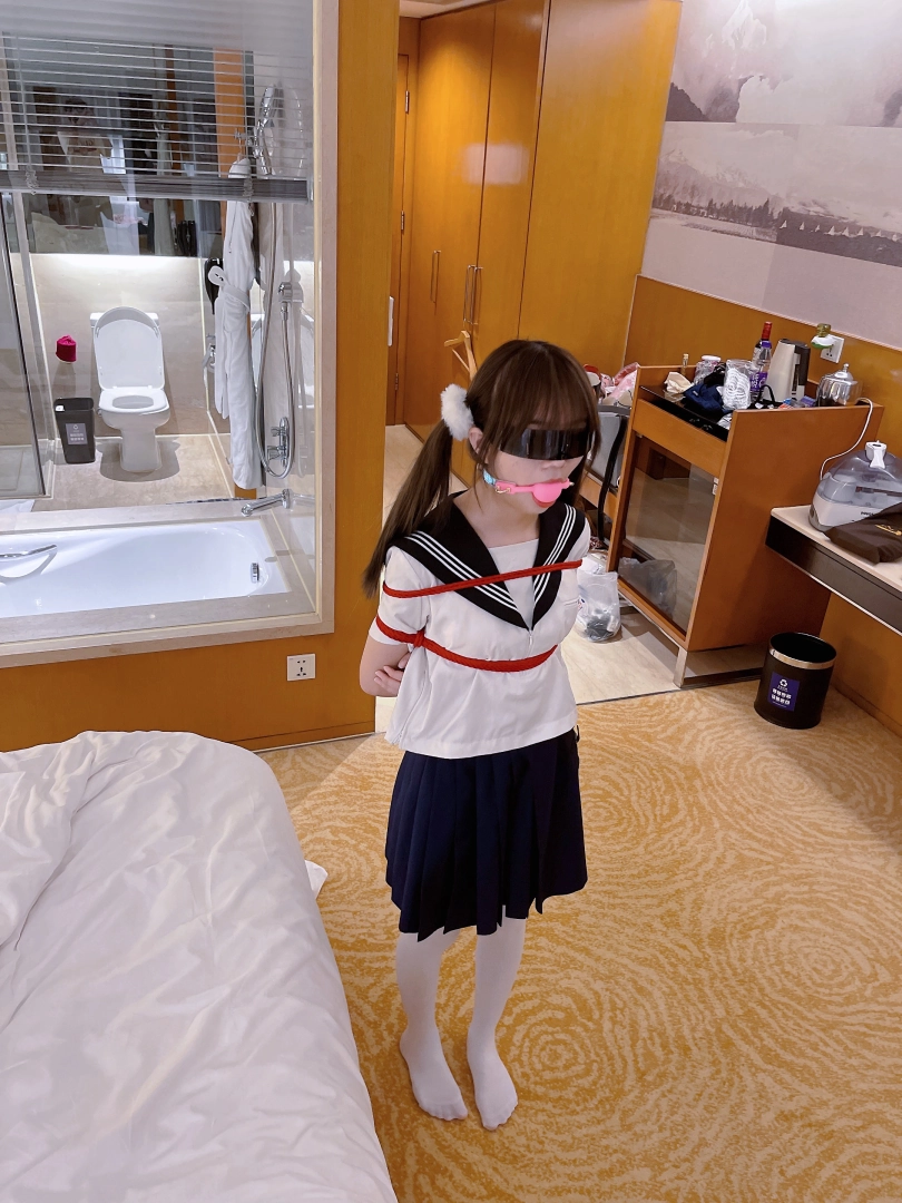茶茶一直很害羞,这次打算带茶茶尝试羞耻的伪装拘束:把茶茶绑好后带上口球口罩,披上外套后出门。茶茶需要穿过酒店大堂、门卫、保安并在室外散步一阵子才允许回来哦~