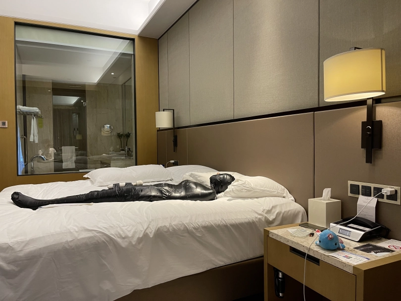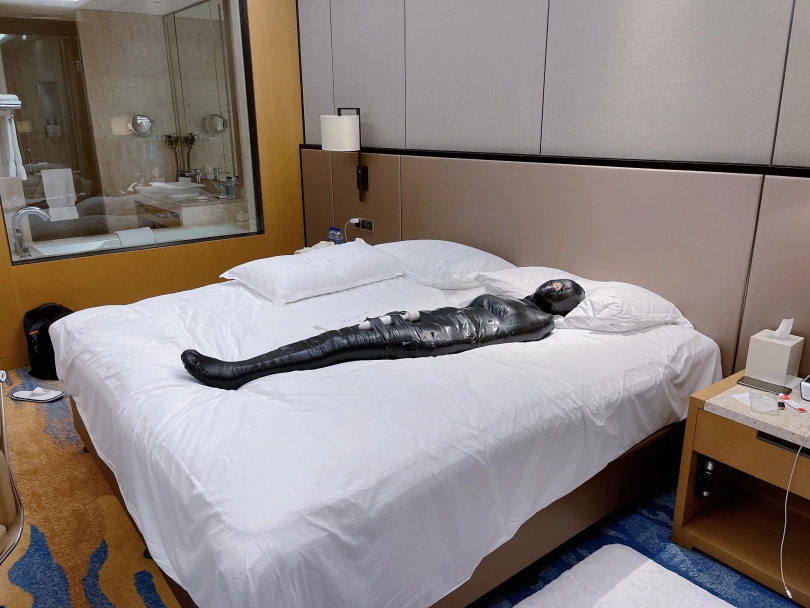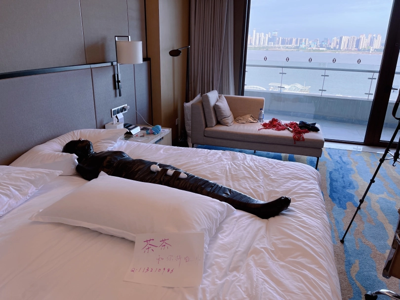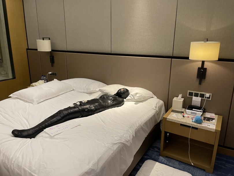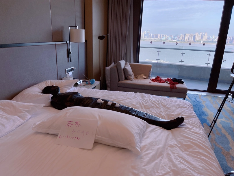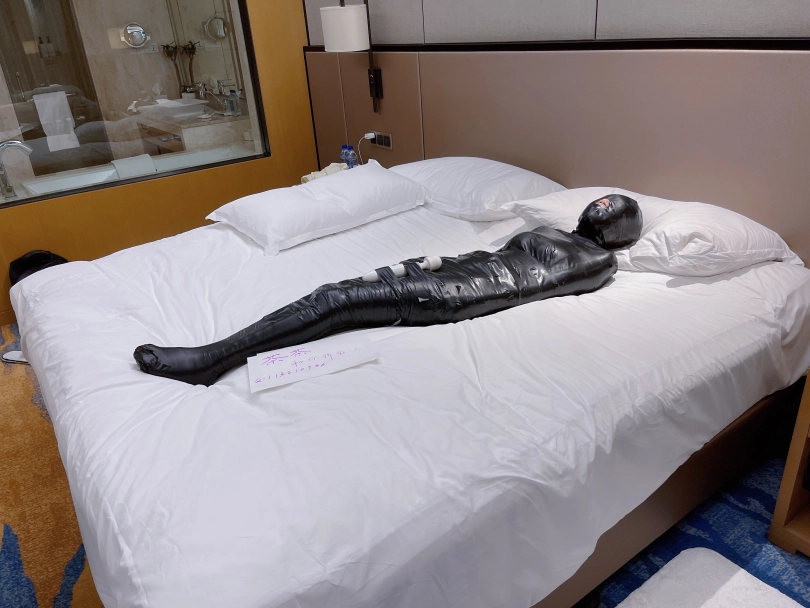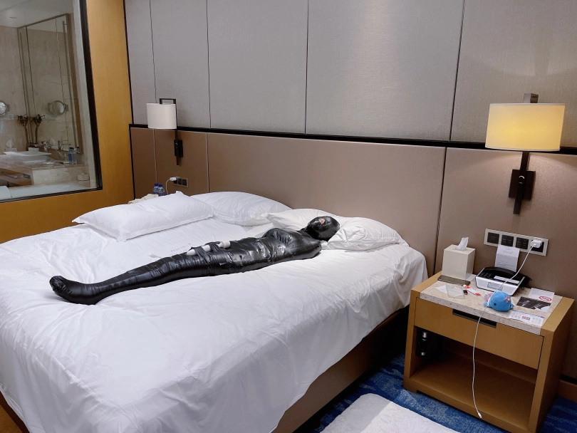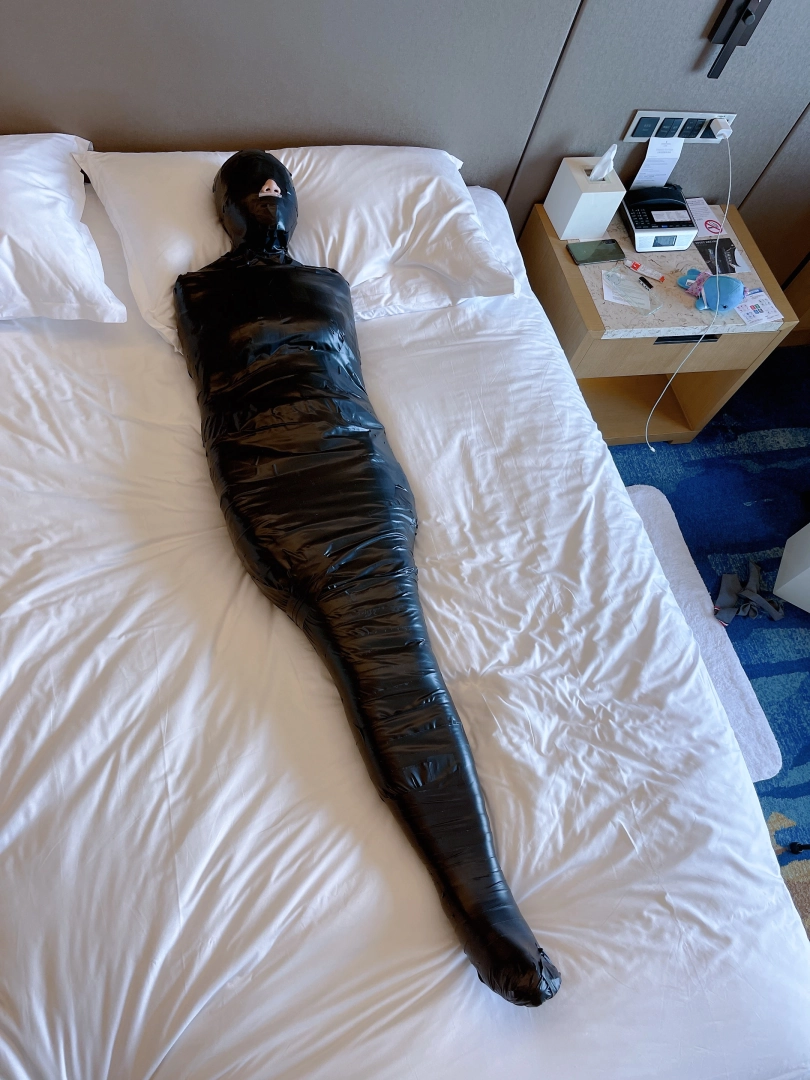 怕茶茶无聊,还给茶茶加上了小话筒,此时的茶茶目不能视,口不能言,耳不能听,身体动弹不得,感官陷入一片黑暗,只能在黑暗中静静感受紧贴皮肤的绝对拘束感。