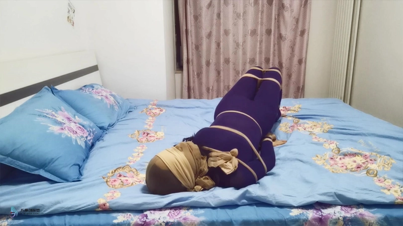 瑾萱:“你好吵呀,得把你嘴巴堵上”。说完,拿出丝袜塞进艾可的嘴里,又用一双连裤袜套在头上,并用丝袜蒙眼。