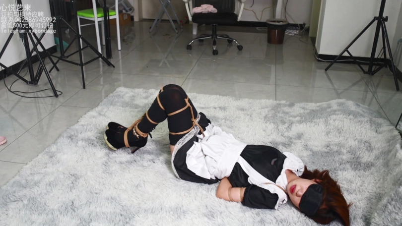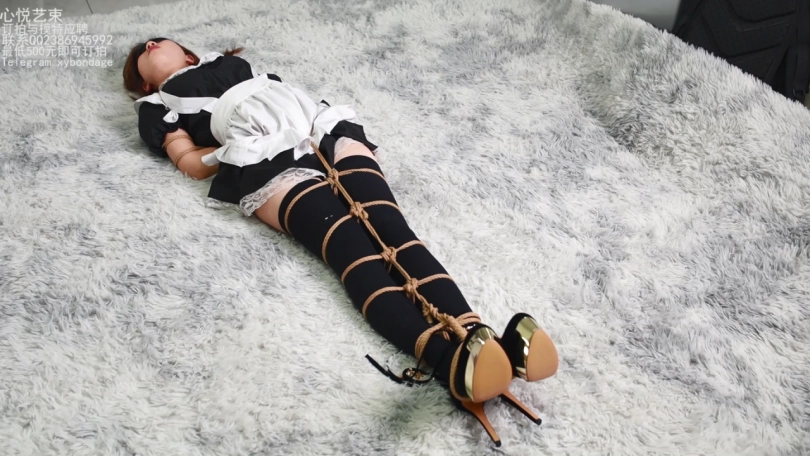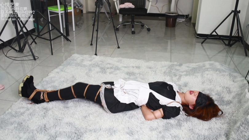【心悦艺束】小女仆文文逃脱魔术挑战之人鱼缚堵嘴挣扎