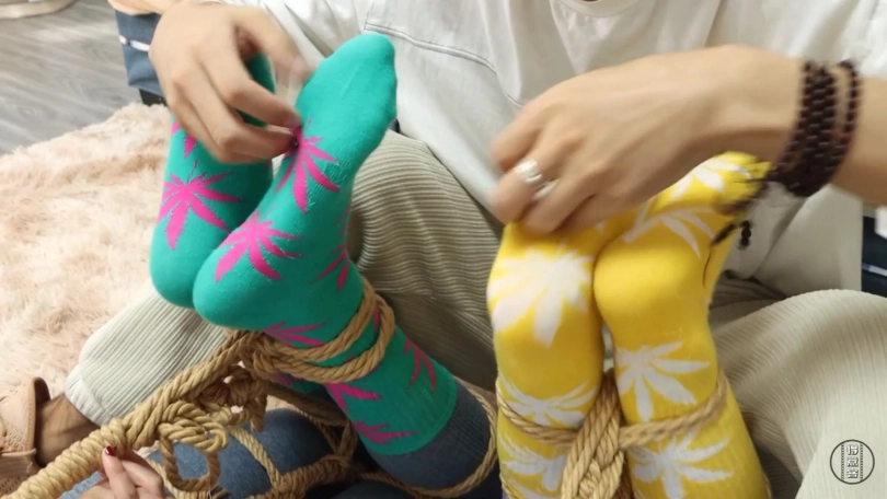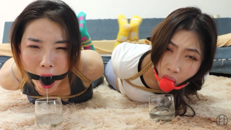 画面一转,一含被绑成大字形,口球堵嘴,安安从上到下抚摸亲吻一含,把脸埋在胸前,深深的嗅了一口说:“姐姐的味道还是那么让人陶醉啊。我可得好好玩一玩,来,姐姐尝尝我的丝袜味道如何”,脱下自己的黑丝塞入一含的口中。歹徒出现在后面,一含拼命的挣扎想提醒安安。安安:姐姐你就不要反抗了,妹妹我玩够了自然会放过你。安安正陶醉的时候被歹徒从后面打晕,倒在姐姐身上。安安醒来时压在一含身上,和一含绑在一起,二女共同带着连体口球。歹徒玩弄二女的丝袜小脚,接着把二女绑成直臂驷马放在地上,二女带着口球,口水不住的流到下方的杯子里,接着歹徒又脱下二女的原味棉袜塞进了对方的嘴里,二女不断的痛苦挣扎。。。。。。