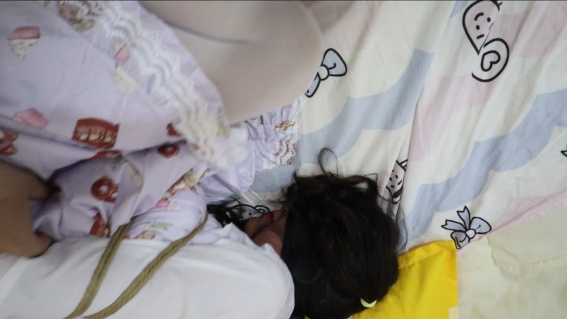 最后睡醒啦,要做个运动,然就是对白丝脚的抚摸TK挠,慢慢的刺激这个刚睡醒的lolita的小宝宝,看着怕痒的若灵马上就从迷糊中醒来了