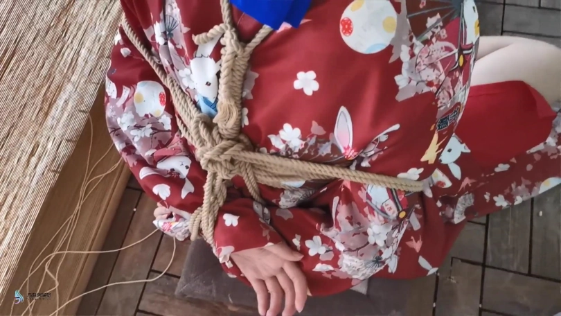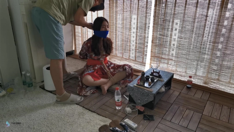【JS】曼文 日式和服盘腿捆绑+丝袜蒙嘴