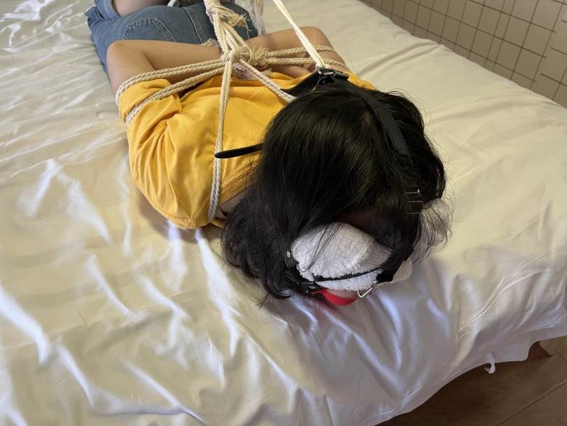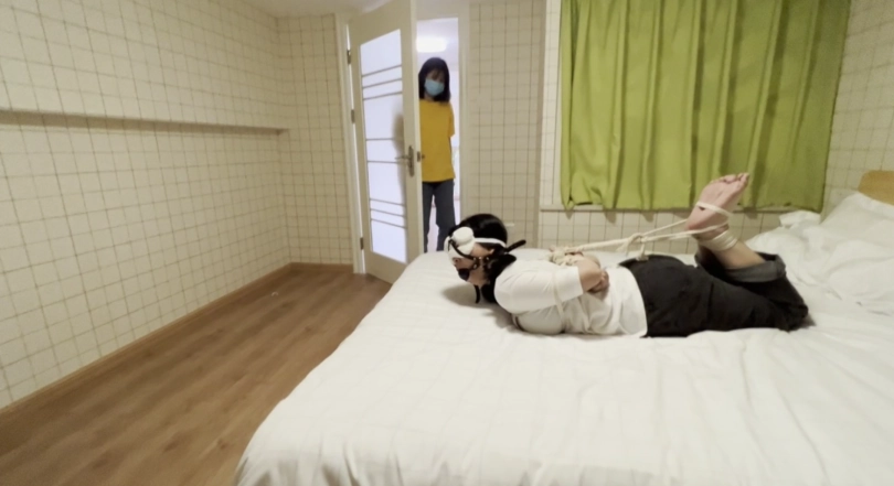随后姐姐也被绑了起来,带上了眼罩堵住了嘴,和妹妹呆在了一起,妹妹还不知道什么情况