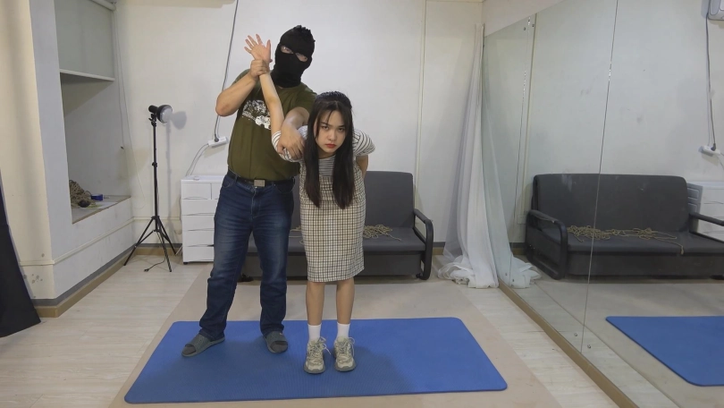 【美束映画】苗条的高个子美女荣荣,穿上格子裙,仿佛邻家妹妹一般,清纯乖巧的样子很招人疼。反扭,手铐,脚镣,蒙头,堵嘴,押解,跪缚等,喜欢的看一下。