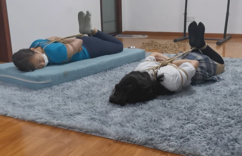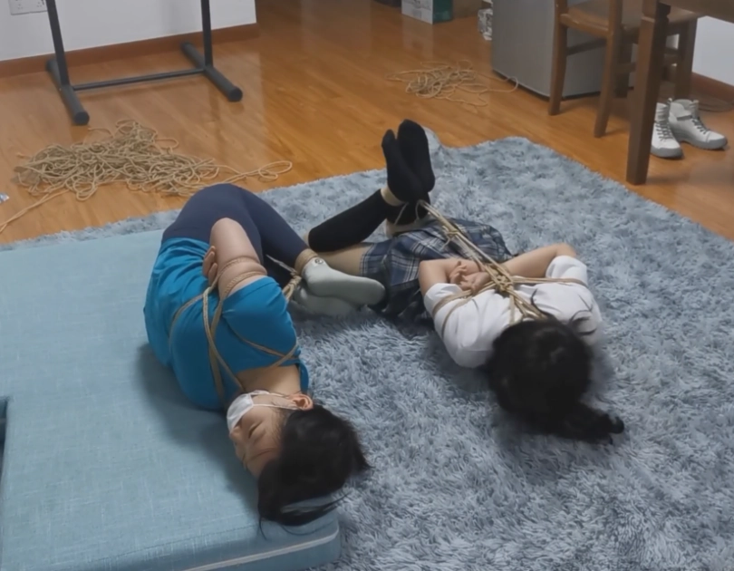 诗诗拍到一半,她的小姐妹突然打电话要过来看一看。既然送上门的话,当然是一起绑了呀~~~~。解不开的话,还要加挠痒痒哦