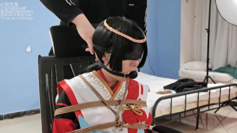 性感少女筱筱的cos组频频,阴阳师-八百比丘尼。内容主要为拘束实验室脱缚挑战,以及不同的堵嘴,根据老哥的要求,嘴巴里面塞满了筱筱换下来的袜子,然后外面用口球堵上。后面再换另一条都进去,外面勒一天丝袜,再在上面覆盖一层丝袜确保全面封堵,密不透风,把袜子的味道在嘴巴里充分挥发,刺激的筱筱不停挣扎哈哈。