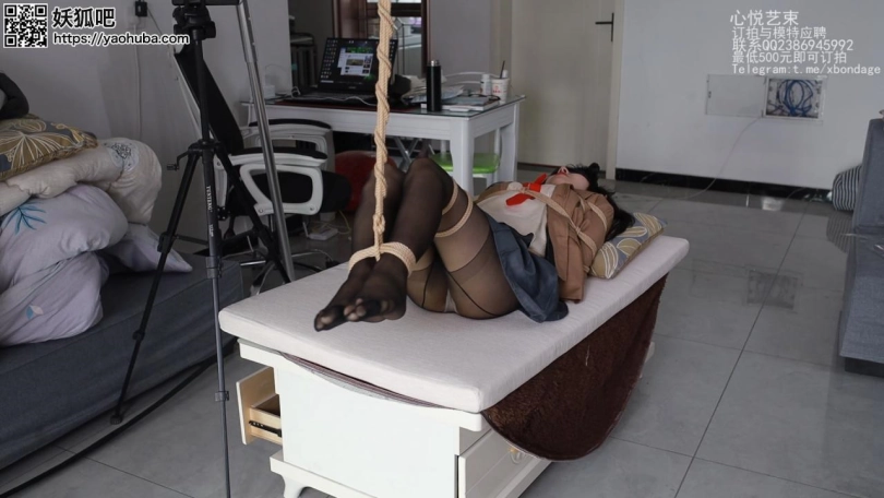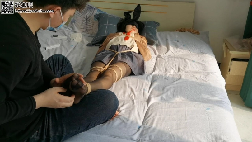 梦泪的cos的麻衣学姐简直就是麻衣本衣,她自己都说这衣服简直就是为她量身定做的,说实话在这双黑丝美腿面前我也很难把控住自己啊。这是她在这边休息了一晚之后第二天早上刚睡醒就开始要被我绑起来了,然后就是上下齐手了,这还是第一次拍摄所以没好下手太狠,只能不停的调弄她敏感的地方。后面抱到客厅把jiojio吊起来,36码的小jiojio在手中翻腾,辗转玩弄。