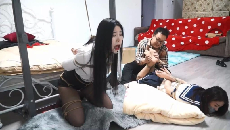 (捆绑穆轻语,穆轻语绑法如下图,苏雨晴绑成驷马)