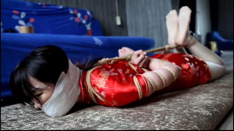 穿红色旗袍和连裤丝袜的女孩和表哥夏日在家闲着没事,表哥提议玩个捆绑打赌游戏,即自己拿绳子将女孩捆绑起来,找东西塞住嘴巴,如果女孩能在15分钟挣脱开自己就给她300块钱,外加一顿大餐(自己请客),女孩答应了,并提议表哥可以拿自己穿过脱下来还没洗的两双肉色短丝袜塞嘴里。表哥:不嫌脏啊,要不要换干净的东西塞嘴?女孩:反正我很快就挣脱开了。