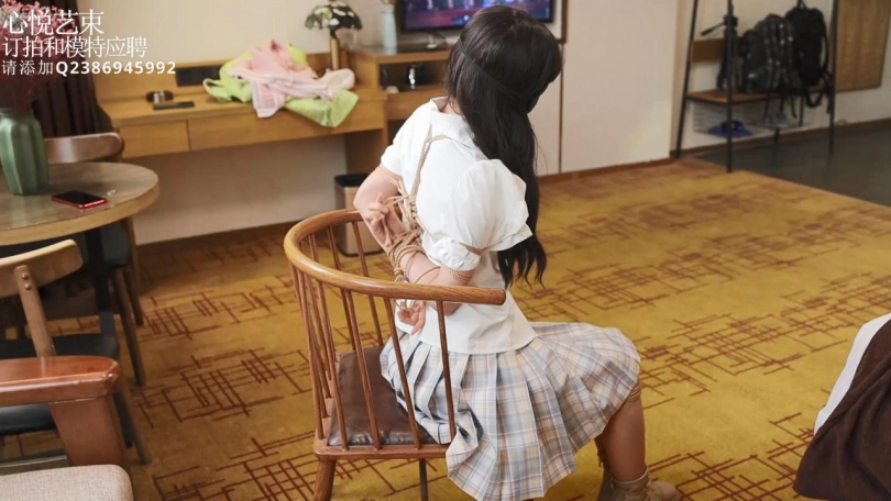 【心悦艺束】写真拍摄中途询问是否可以接受捆绑,意外的答应了哈哈。小妹妹第一次被绑,算是被忽悠的吧,让她尝试自己解开,至于结果嘛,大家自己看喽。