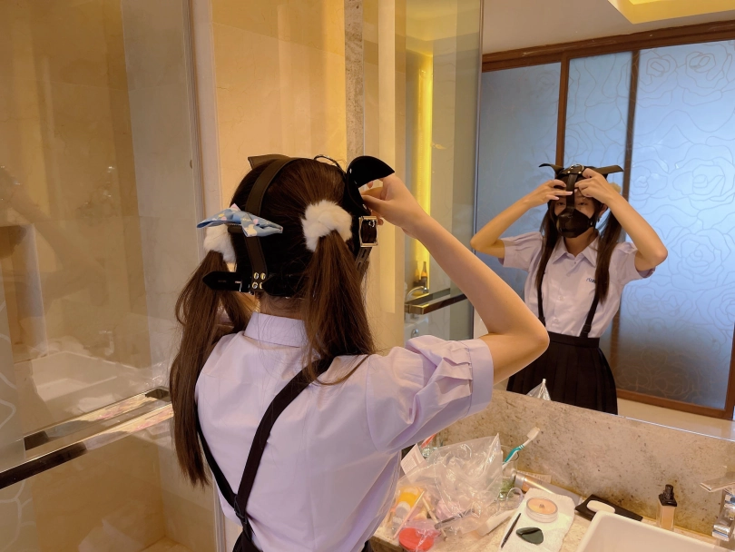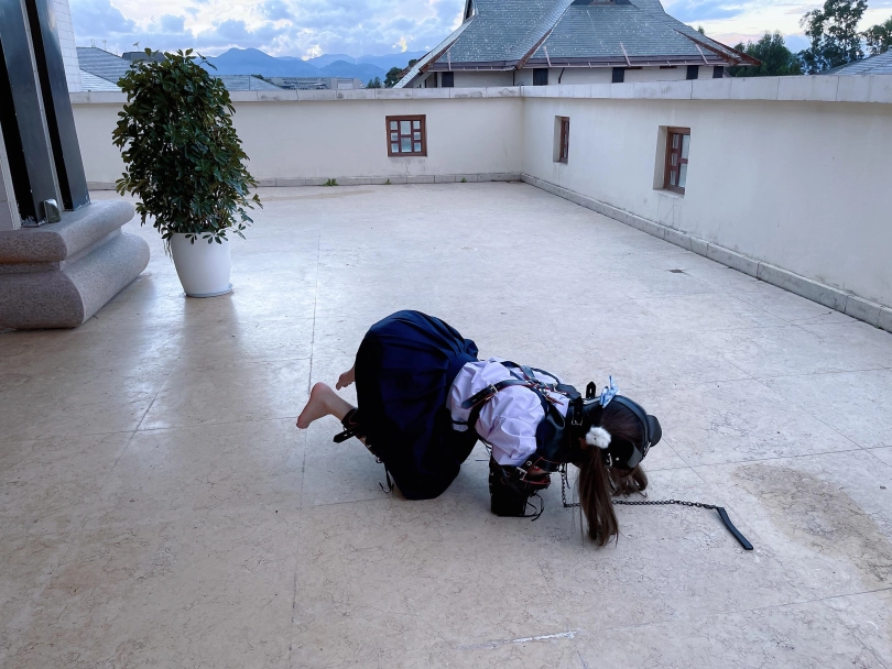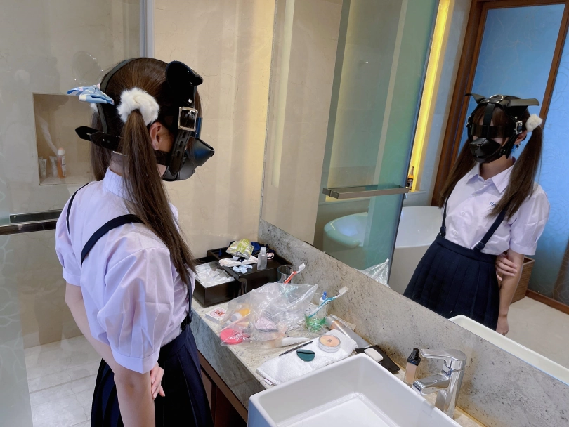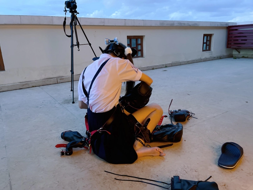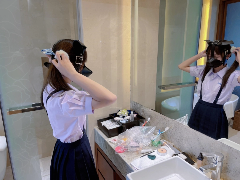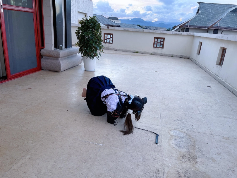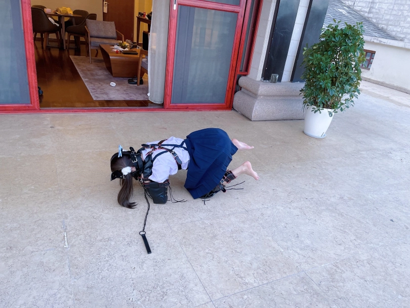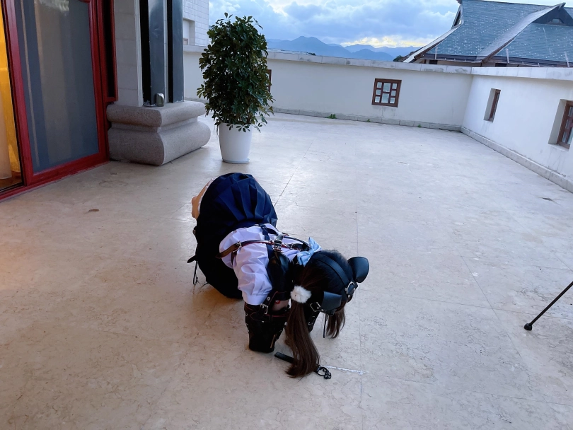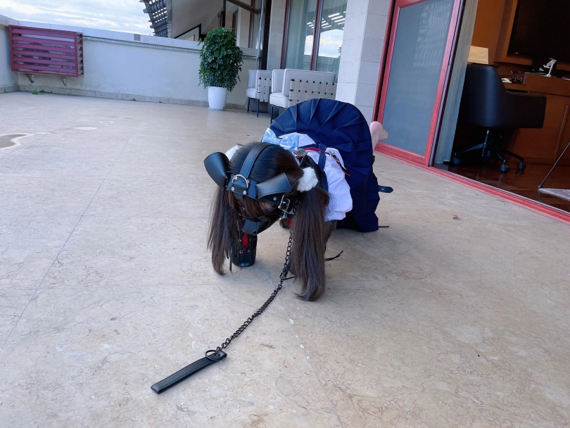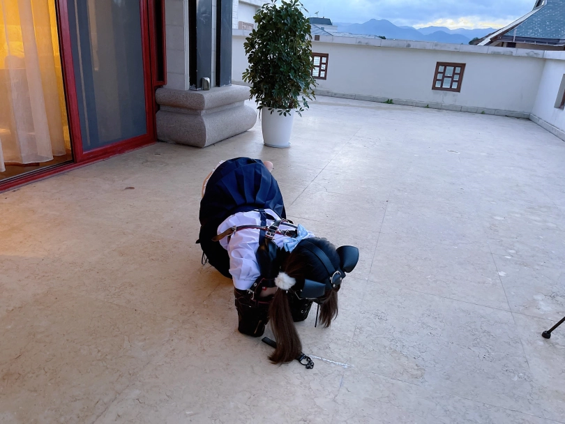 为了视频有“户外遛狗”的羞耻感和效果,特意开了个带庭院的套房~