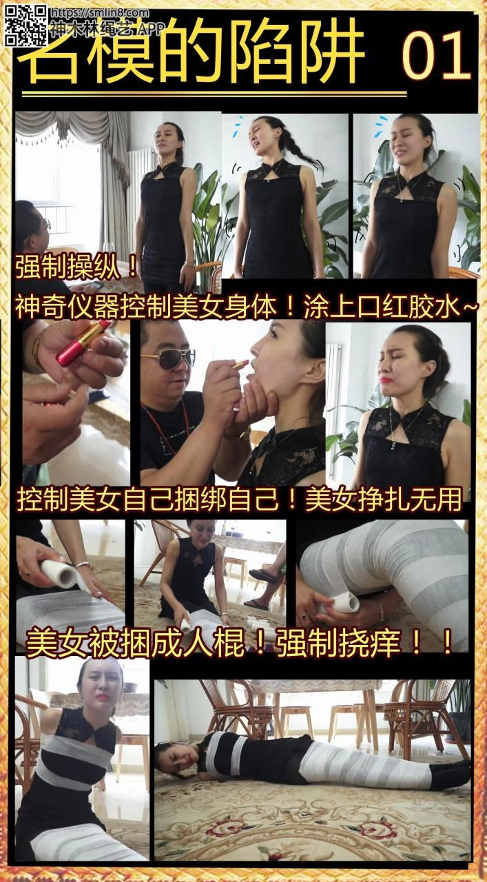【逍遥】《名模的陷阱01》强制控制真人版!美女如木偶般被控制!口红胶水!白色绷带包裹!千万别错过~