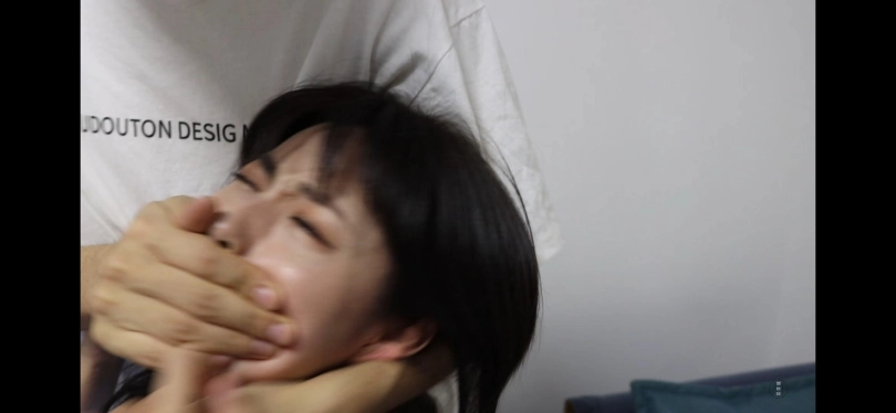 南羽盯着镜头,委屈地点头,发出呜呜声:“呜呜..我会..听话的...”