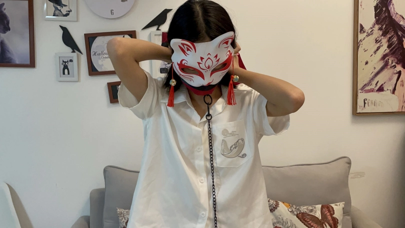 1. 自己戴上手铐,项圈,皮手环(戴上后一直戴着不摘掉)