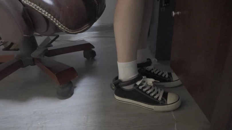 (突然,小明走了进来!珊珊吓得赶紧把戴着手铐脚镣的手脚藏起来!)