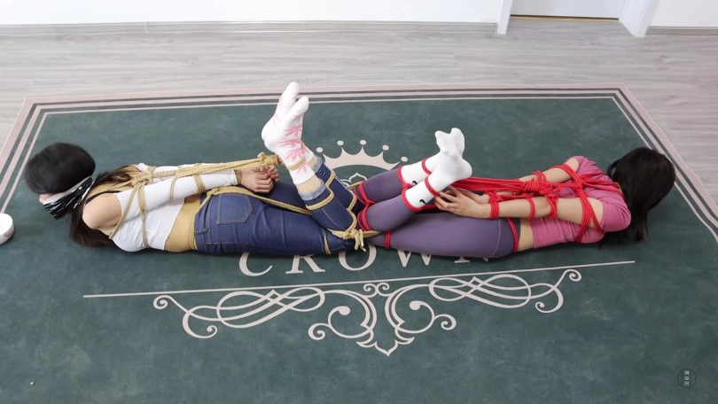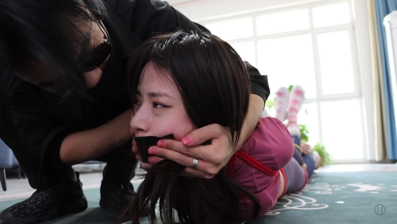 主演 原配 米娅饰演。小三 南羽饰演。剧情介绍 这天小三正在男主面前跳绳,一会累了,靠在男主肩膀上撒娇并让男主帮买化妆品,首饰。只见男主微信来了消息,原配说到:渣男昨晚又不回家,是不是跟哪个狐狸精鬼混去了?这话把男主和小三都激怒了,于是两人想把原配骗来,然后整整她。商量完,男主给原配发了定位。原配上当,找上门来,看到坐在沙发上的小三就要打她并破口大骂,二人扭打起来,男主赶忙过来,从背后反剪原配双手并让其跪下,原配仍骂着:渣男,狐狸精,呸。损人的小三决定将自己刚运动完的袜子脱下来堵住原配的嘴。男主捏住原配嘴巴让她张开,小三将一双袜子塞了进去,原配只能拼命发出呜呜呜呜的声音。二人开始用绳子捆绑原配,男主捆绑原配时,小三还不忘拨弄原配头发并嘲讽她。一会,原配努力吐出嘴里的臭袜子,大喊救命,就被小三死死捂住嘴巴又只能呜呜呜呜了,接着二人将她捆绑成直臂紧缚加驷马倒攒蹄,随后为防止她叫喊,小三用昨晚跟男主啪啪的内裤塞到原配嘴里,接着用白色绷带缠绕封嘴,又用黑色胶带缠绕几圈,把嘴彻底堵严实了,任凭原配用力喊叫也只剩下呜呜呜声音,捆绑堵嘴完毕,二人拿来皮鞭和毛刷,抽打原配胸,大腿,脚心,用毛刷挠她全身,再翻个身,摸她的胸拉股绳。过段时间,男主去上厕所,在厕所知道了小三背地里跟好几个男人有一腿,气氛得拿来红色绳子,摁倒小三并将她捆绑起来(也是驷马倒攒蹄加直臂缚),接着用毛巾塞她,外面用黑色超黏胶带封上,捆绑堵嘴好小三后,用一根绳子连接二人膝盖,让二人互相制约,接着在小三面前放一万元钱,在原配面前放一碗水,让她在地上爬,看谁先接触到眼前的东西,谁爬慢了,还遭到男主的鞭子伺候。二人剧烈挣扎并呜呜呜呜(这段挣扎及其真实喜欢的朋友不要错过。)一会,原配含糊不清说到:我碰到了。但男主并不打算放了她,只是把她仰面朝天的放置,至于小三就没那么好了,被装入大号黑色麻袋里包裹包装好,外面再用红色绳子捆绑上,让其动弹不得,只能呜呜呜。处理好二人后,男主表示去睡个觉,留二女在地上挣扎扭动并呜呜呜呜。(最后挣扎扭动不少于3分钟)