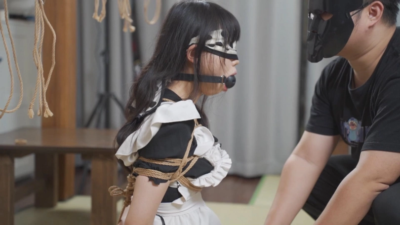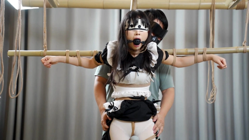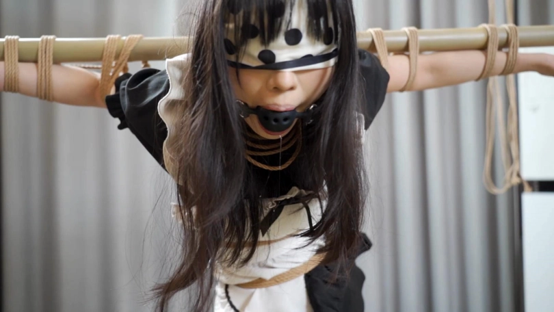 【象人】女仆装白丝小0被驷马捆绑后调戏,最后绑到十字架上调教。