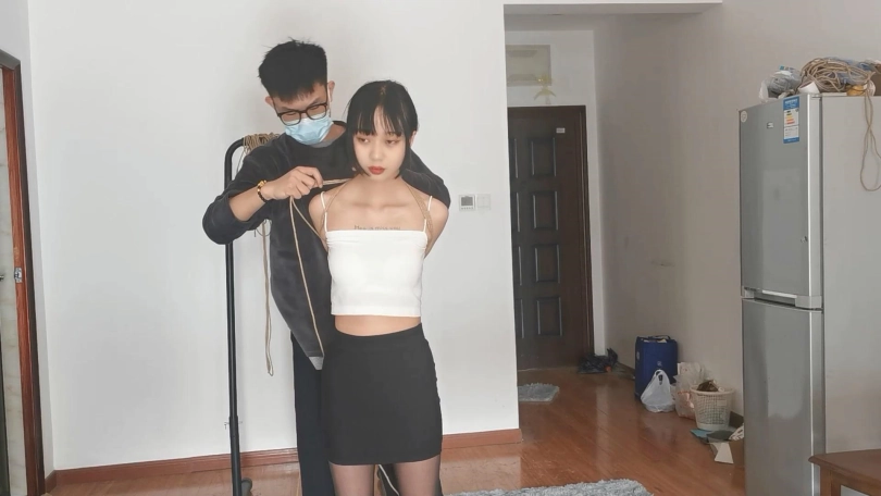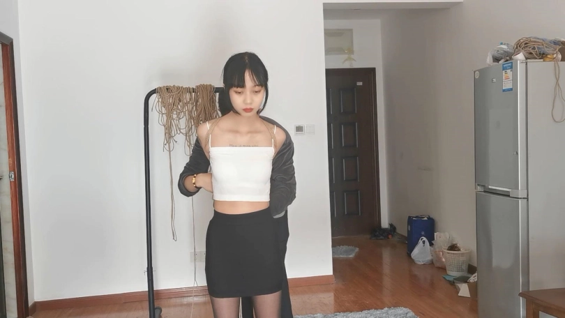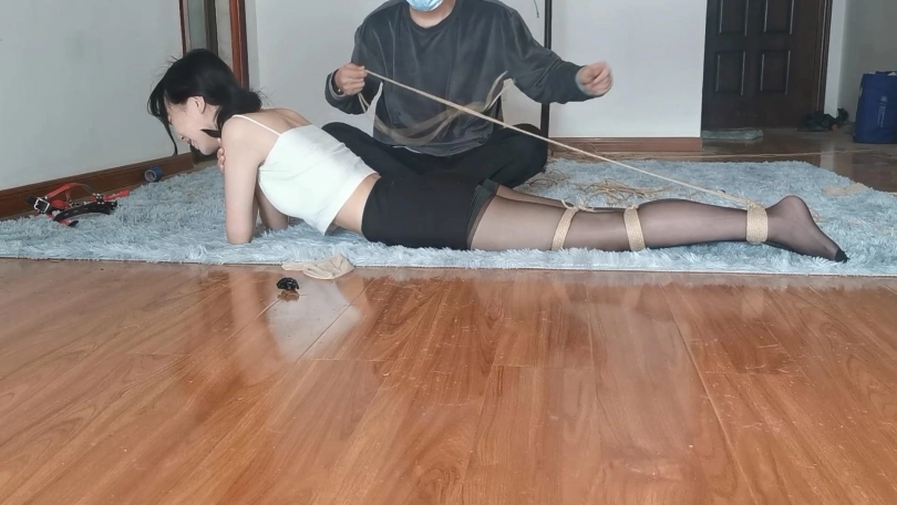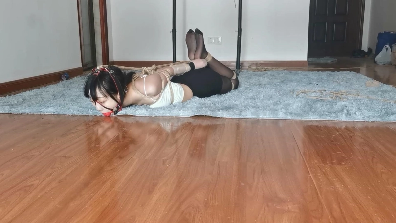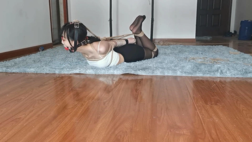 宝妹不仅身材好,柔韧性和耐力都很不错,十分耐绑。这次把她极限直臂驷马紧缚放置起来,双手都用丝袜包裹用胶带缠紧,带上马具口球再用绳子向后拉起来,没有一点挣脱的空间。宝妹就这样保持一个难受的姿势一个人在房间里挣扎,但是这次要90分钟之后才会有人回来救她哦。
