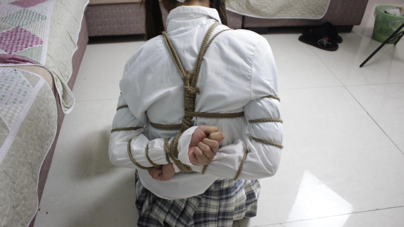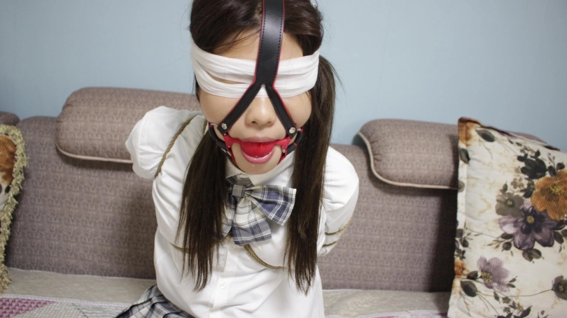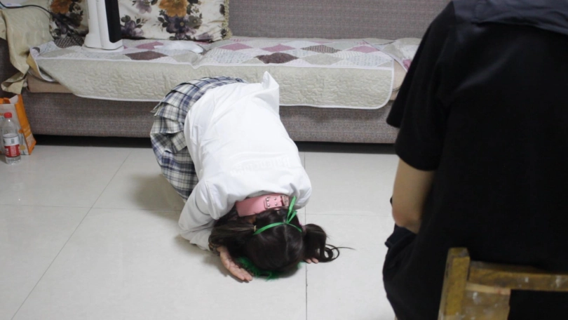 【子衿】挣扎无用-菲菲被囚禁的日常,镣铐跪爬吃饭,磕头,捆绑挣扎,马具型口球流口水