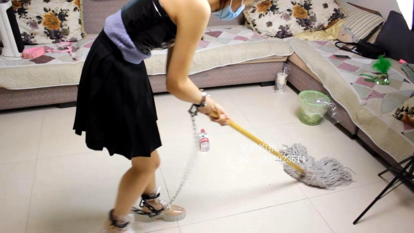 【子衿】菲菲皮衣镣铐囚禁,磕头,带镣铐跳舞,口球口水,带镣铐做家务,人体桌子供主人翘腿
