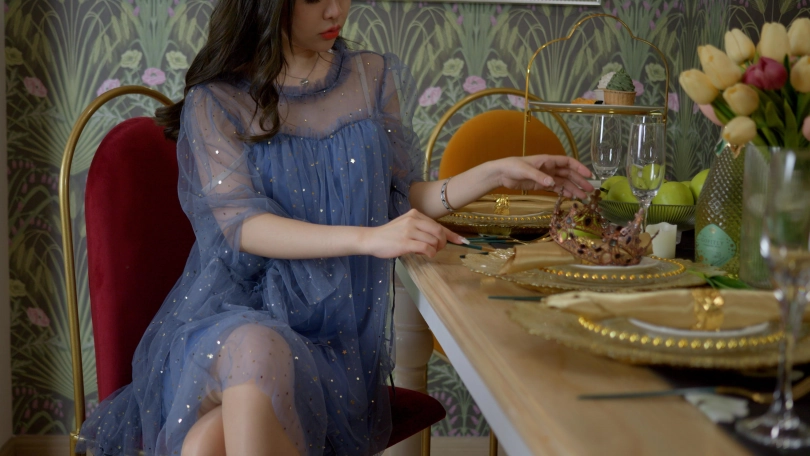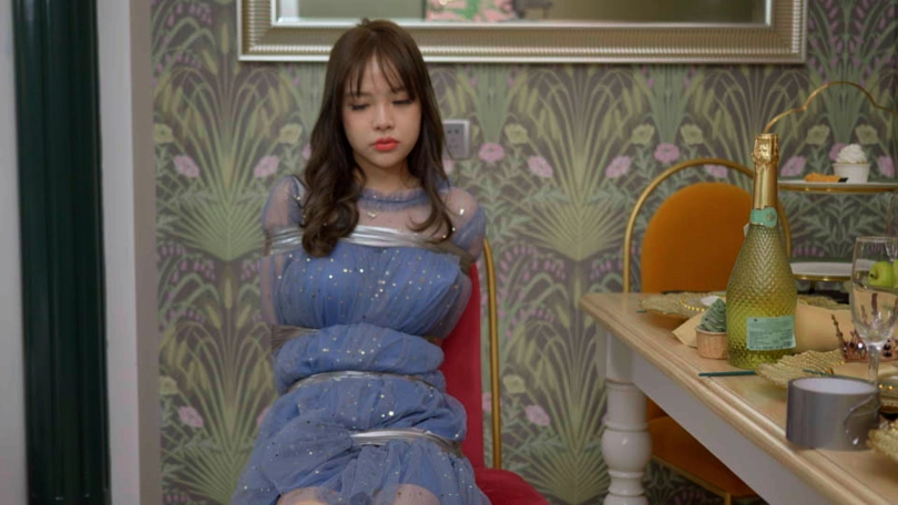 【4K映像】法式餐桌上的小公主,银色胶带捆绑