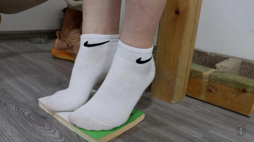 接下来的军哥毫不留情,在看到鞭子登场的刹那,星宇终于破防了,自己的屁股、大腿和胸部不断被鞭子抽打,而她却只能流着口水努力维持着站姿,不仅如此,军哥还将红豆倒入高跟鞋强制给她穿上,这些红豆踩在星宇的前脚掌处,承受着整个身体的重量,对她的足底是一种巨大的折磨。