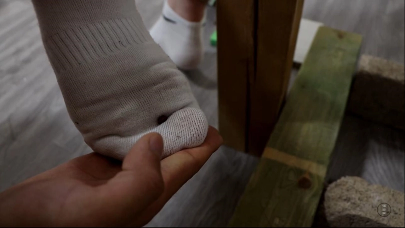 在确认星宇不会轻易屈服后,军哥注意到了星宇的运动鞋和袜子,这双运动鞋和袜子都是之前与他切磋时穿的,果不其然,星宇因为忙于直播,根本没空洗袜子,也就是说她脚上的袜子已经穿了好几天了,扒下她的鞋,露出里面已经被汗水打湿,脚底脏兮兮的白袜脚,一股脚臭味直冲军哥的鼻子。