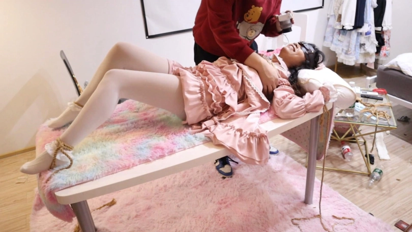 【荷约】把粉裙白丝棉袜的Lo娘姐姐绑在桌子上,手脚都固定好,这样姐姐也能挣扎开嘛,挠到你花枝乱颤惊叫连连为止,就算你伸舌头装可爱也不给你解