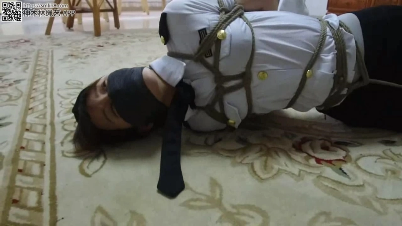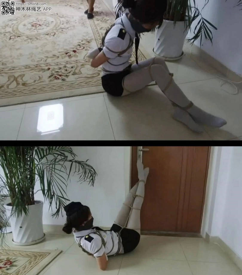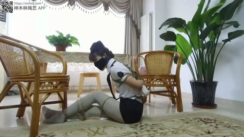 【逍遥】《蝴蝶效应01》美丽警服美女~灰丝美腿交错捆绑,手被厚袜子包裹胶带封口,绷带,胶带,口罩多层堵嘴