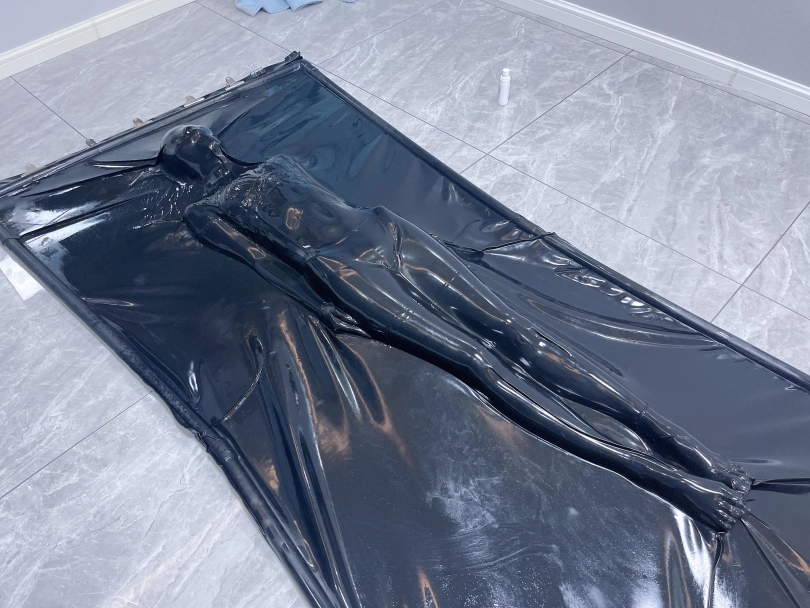 让茶茶钻进真空床里,用大功率抽气机抽光里面的空气。茶茶娇小的身体轮廓完美的显现了出来,小小的一只,反差感简直MAX!尤其是涂上亮光油之后,茶茶完美的身材、小小的身体油亮亮的,整个人的轮廓更加完美。小脚丫在真空的压力下紧紧向下绷着,任人把玩抚摸。用脚踩住茶茶嘴上唯一的呼吸口,那种掌控感简直让人欲罢不能...