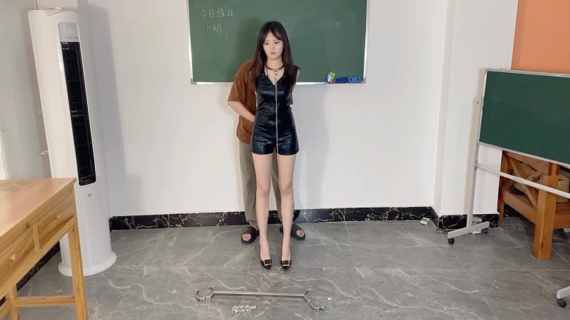 可可老师的身体柔韧性极高被学生反手带上手铐吊挂,双脚张开戴上脚镣,嘴里塞入嘴环,身体前倾头无法抬起,身体弯成90度,口水不停的从可可老师的嘴里流出,学生无比的可恶,用震动机攻击老师的身体,可可老师从来没有感受过这样攻击,老师身体太敏感了不停地大声呼叫,但就是听清她在说什么,身体想躲避,但是逃不开学生的攻击。如此肤白貌美的老师,被学生这样的玩弄。真是又气又兴奋。对着屏幕就是一发。