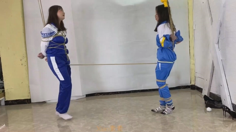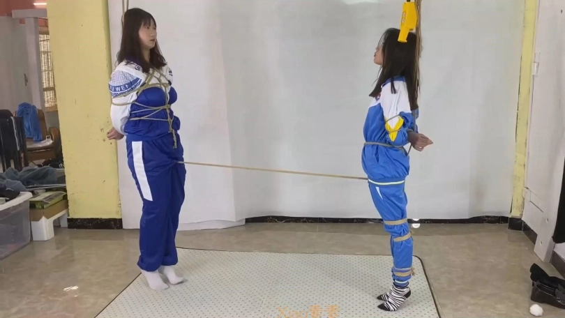3、安安与朵朵被股绳吊绑互相拉扯