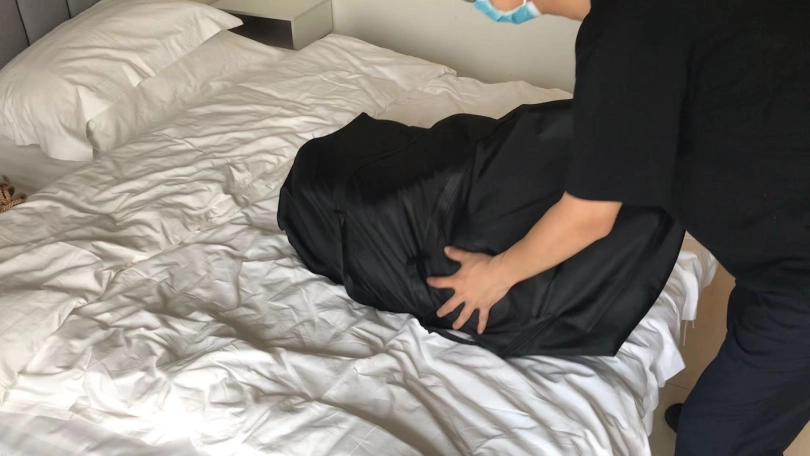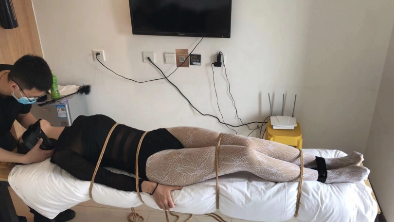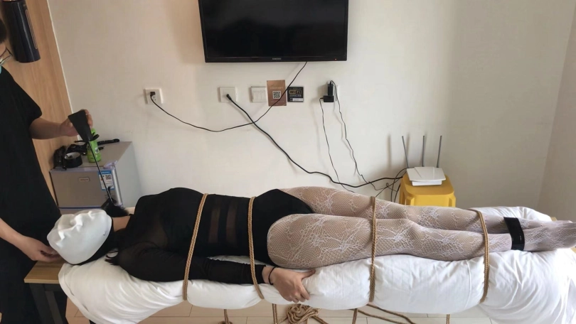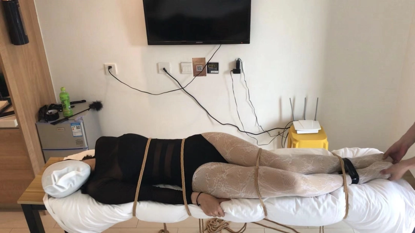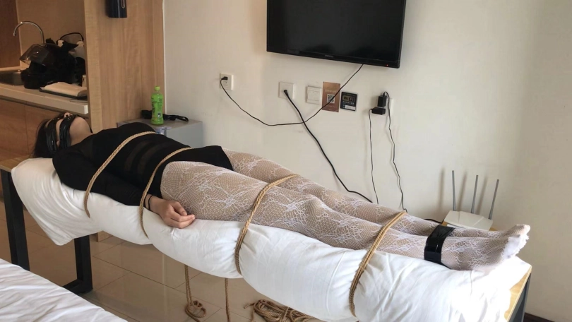 3、绑在长条桌子上呼吸kz,乳胶泳帽正面套,一鼓一瘪太诱惑,少量洒水刺激,热水和凉水换着倒,小周无助挣扎,刺激感上天!