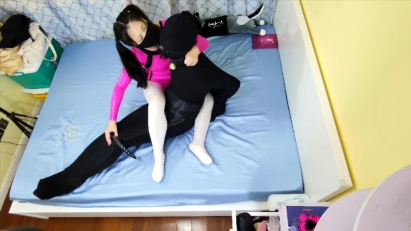 然后各种蹂躏,夹击,坐脸闷[X_X],胸部闷[X_X],锁喉等等,一套下来老王肯定懵逼了,接着妹子继续把老王丝袜全包起来,而且用很难受的丝袜单手套,带上狗铃铛,和大号口球。[X_X]伺候。继续蹂躏。关键妹子像女王附体一样,不停调教老王,叫老王服从,叫主人,叫女王大人,说自己是小狗狗。。。CV对话。反复操练,强迫老王进入角色,老王心态真的蹦了,183高的猛男老王就这样继续被妹子调教和驯服,然后夹晕过去不省人事,毫无还手之力。妹子还不肯放开老王以后还要继续折腾老王。。。。。