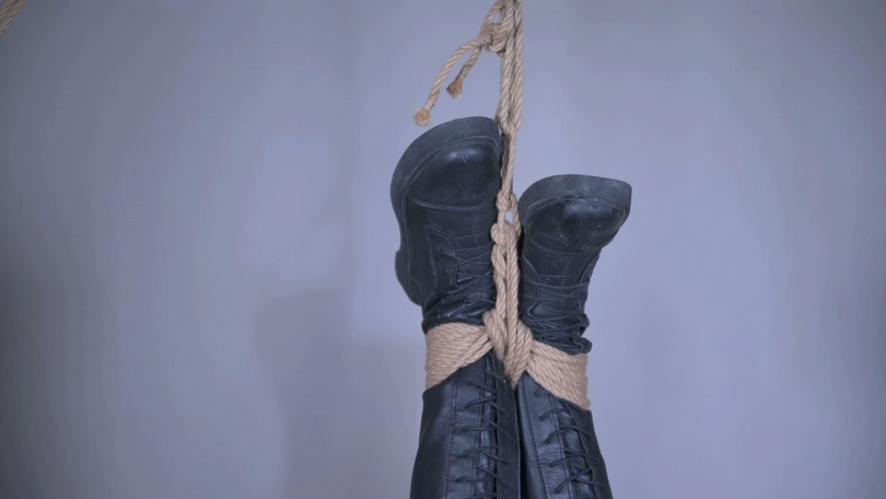 这次的吊缚,绳师一个小小的失误,让萱萱左脚受力过大,本来承受能力极强的萱大姐直喊疼,正当绳师试试她大腿的痒点的时候,还是不得已放她下来。最后她主动让扒下靴子看看绳痕,两个人为了绳技争论起来,还要打赌,绳师甚至要跟她赌命。