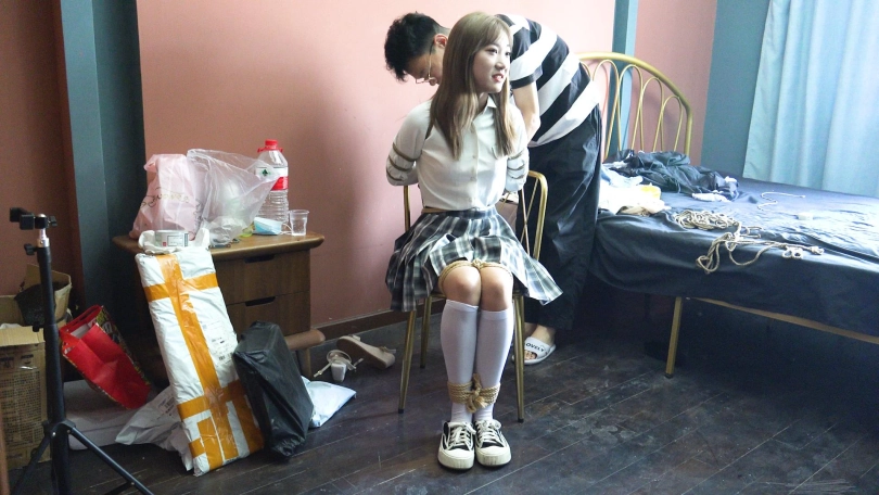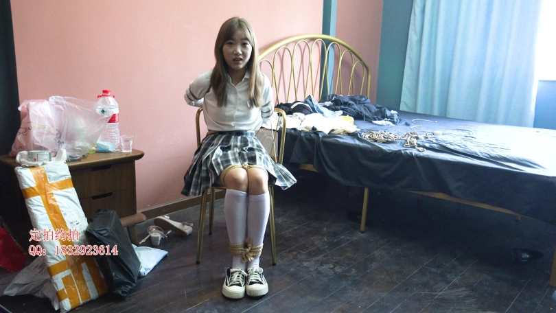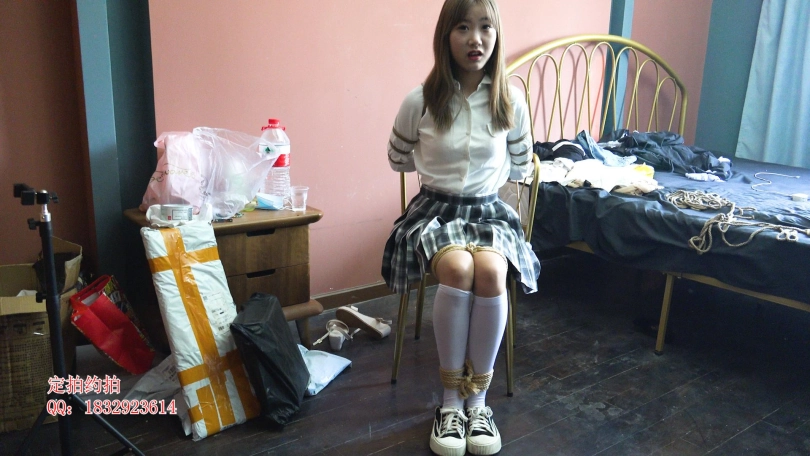 【子衿】新模试镜 JK五花绑椅子上挣扎,带上口球口水就流出来了