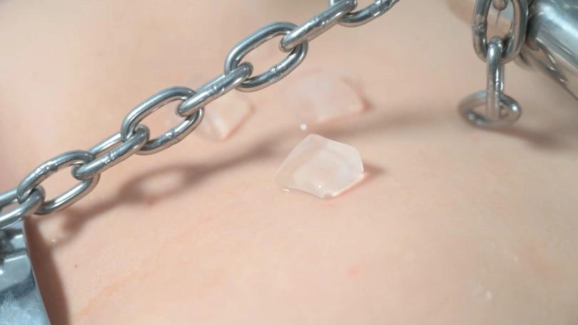 绳师本人其实最怕电击的,于是想出用电击器来折磨被K9固定的汤圆,还提前在某多多买了一个外型美观的电击按摩器。但就是这个玩意,太太太TM坑了,它的原理竟然是,用手握着把手,把电击头放在皮肤上,形成回路,才能有电击效果。如果想对对方起到作用,就必须用手紧贴对方皮肤,合着就得一起感受电流,只是电击头的部分接触的地方刺激最大而已。这次绳师可是做出了很大牺牲。再说说冰块擦身刺激效果,原来冰块放置的皮肤,用冰水长时间刺激过也会发红,再加上用电击器电冰块擦过的地方,让她好好尝试一下。最后说说这个架子,绳模双手被这样铐,手掌的受力还是挺大的,一个不错的效果就是,她会自己变换手掌的姿势,或是握拳,或是手背着地等。