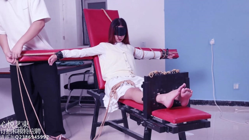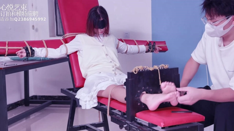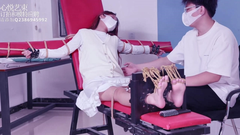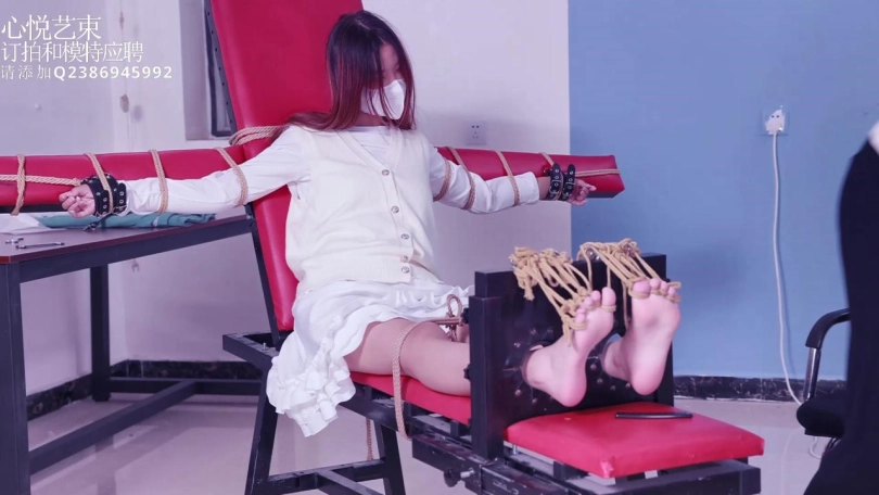 【心悦艺束】00后妹子00琳琳初次老虎凳绑脚趾TK,主要挠得脚,大腿根,腰。
