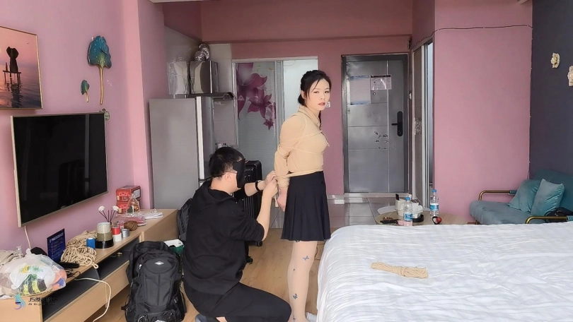 超紧的直臂驷马捆绑起来,连头发和脚趾也绑上。用原味棉袜塞进她的嘴里,外面用绷带缠绕,防止她吐出袜子。用快乐棒不停的刺激着她的Y部。[X_X]不断袭来,受不了的发出“呜呜”声。。。