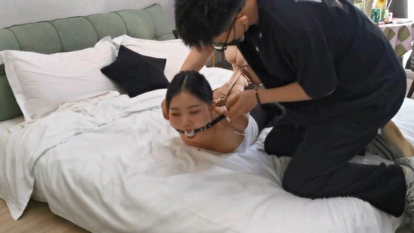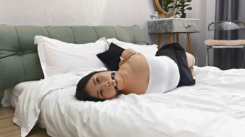 舞蹈老师小九,作为舞蹈老师柔韧性和耐力非常好,直臂驷马没有压力,一身小吊带显得身材非常的丰满,这次绳师绑好之后出去了很久,只留小九在酒店的大床上翻来覆去的挣扎,最后都滚到床底下去了。