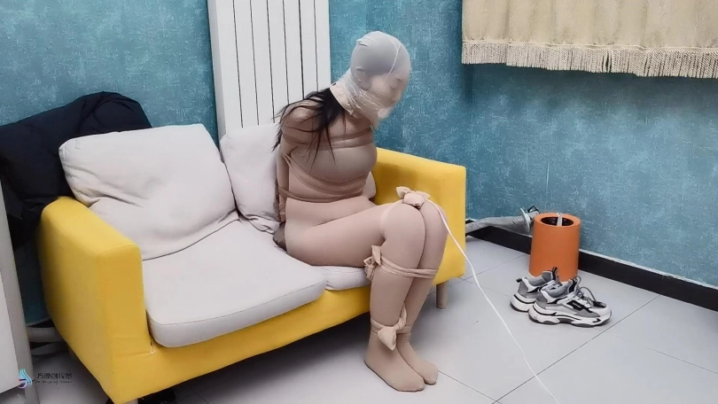 她穿着一身肉丝连体衣,手脚用丝袜紧紧的捆绑起来。用她穿过的棉袜塞进她的嘴里,头上再套上丝袜,外面用胶带紧紧把嘴巴缠绕,防止她呼救或把袜子吐出来。用快乐棒刺激着她下面的YD,不断的用鞭子抽打她的身体。体验着这种痛并快乐着的感觉。不断的发出“呜呜”的呻吟声。。。