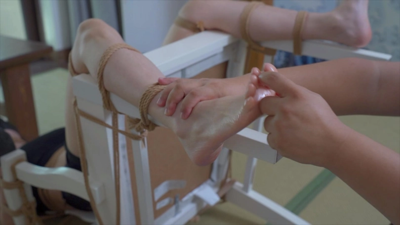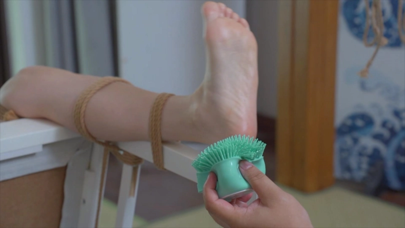 依然是嘴巴很硬,没办法只能对她的脚下手了!