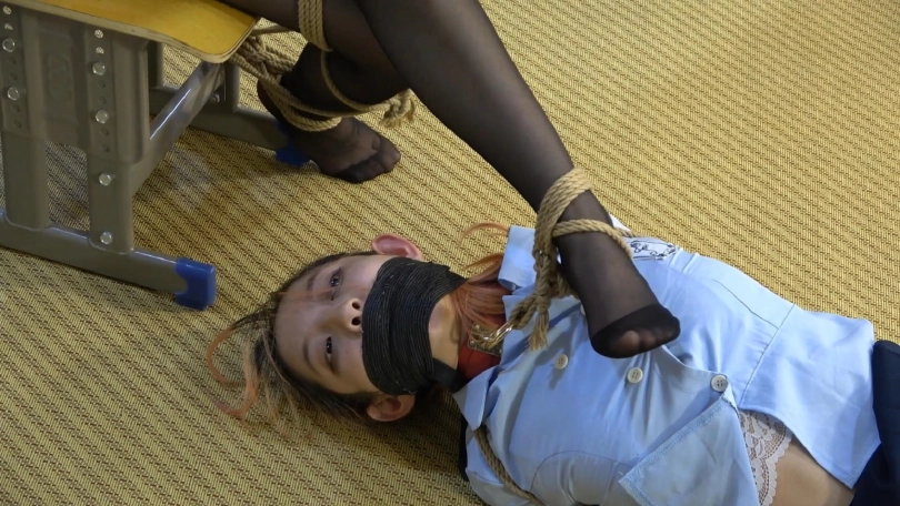 强盗将小狐狸封住嘴,双腿交叉绑在椅子上,珊珊被扔在地上蟹缚驷马绑好后离去。珊珊趁机想用手机求救却被返回的强盗发现。强盗为珊珊带上项圈,用绳子拴在小狐狸的脚边。珊珊宛如小狐狸脚边的一条小狗,十分羞辱。狡猾的强盗蒙住了二人的眼睛,这下她们逃生的机会十分渺茫了......