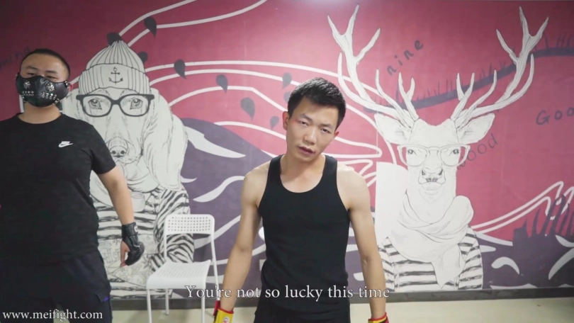 Xiaodie was exercising alone in the gym.Two men entered the gym.One of them had been beaten and ridiculed by xiaodie.The man came to avenge.