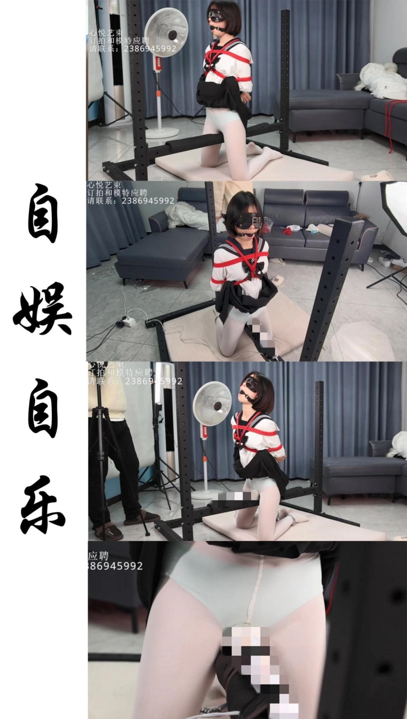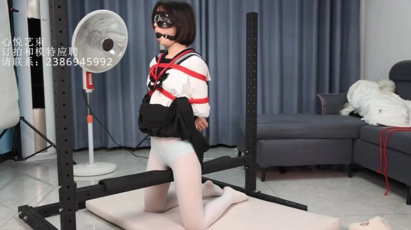 【心悦艺束】小萝莉的自娱自乐。日式后手嘟嘴蒙眼,脚上用脚铐限制在铁马上,横杆上贴着强力震动BB,小萝莉在自己努力的寻找gc。