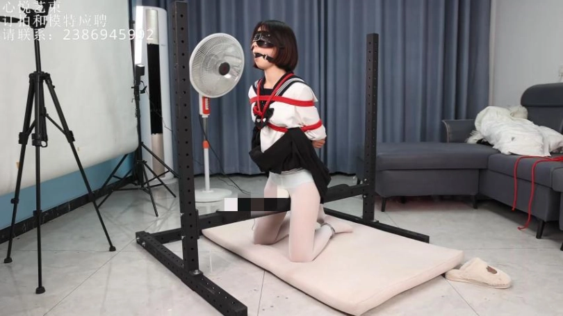 小萝莉的自娱自乐。日式后手嘟嘴蒙眼,脚上用脚铐限制在铁马上,横杆上贴着强力震动BB,小萝莉在自己努力的寻找gc。
