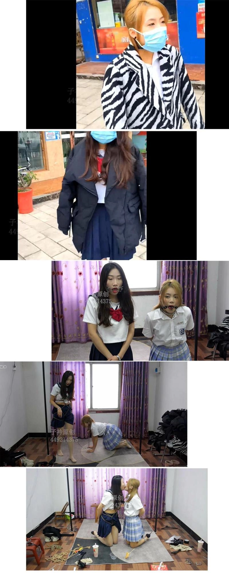 【子衿】妍如晴晴网调实录 带手铐口枷户外走到楼上 龟甲咬鞋挠痒游戏 两个女生相互调教 一起吃东西 舔脚